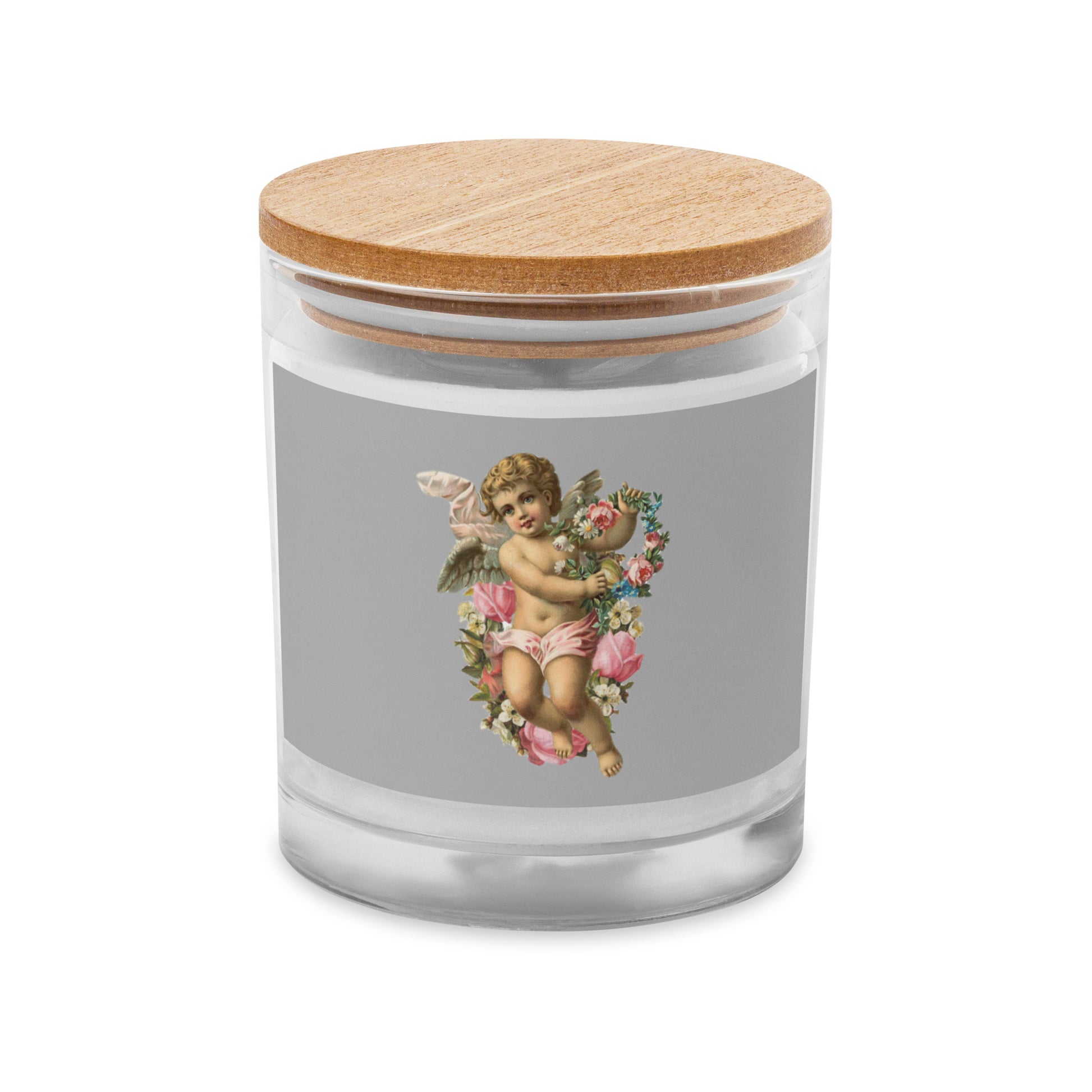 VINTAGE ANGEL WITH GREY BACKGROUND Glass jar candle