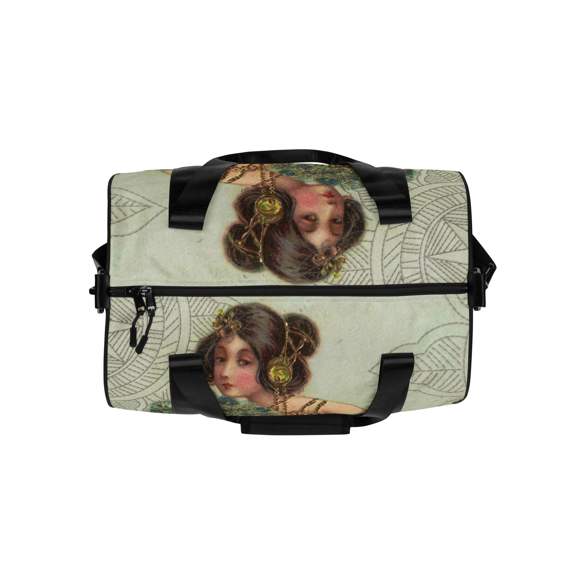 Ready to get your fitness on? Add some punch to pumping iron with this all-over print gym bag. Made from 100% polyester and sturdy, water-resistant fabric, this bag is fun meets function. And it’s got pockets!