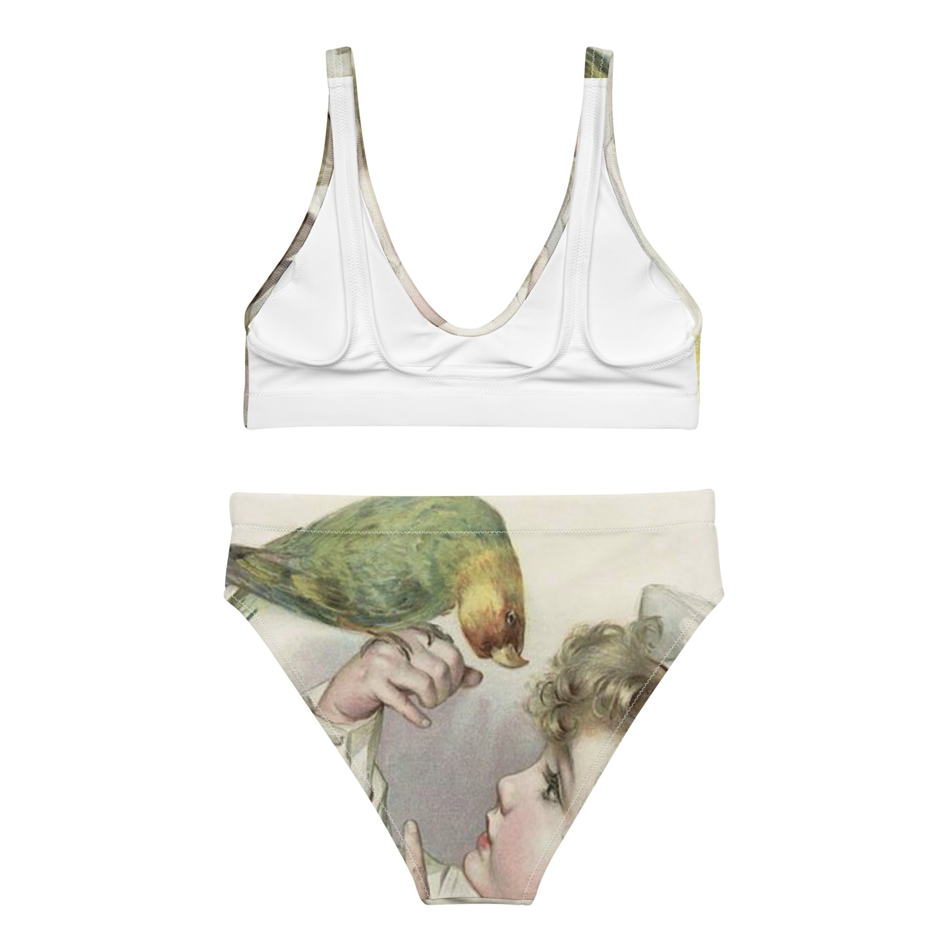 BIRD BIKINI-VINTAGE GREEN BIRDIE WITH CHILD Recycled high-waisted bikini