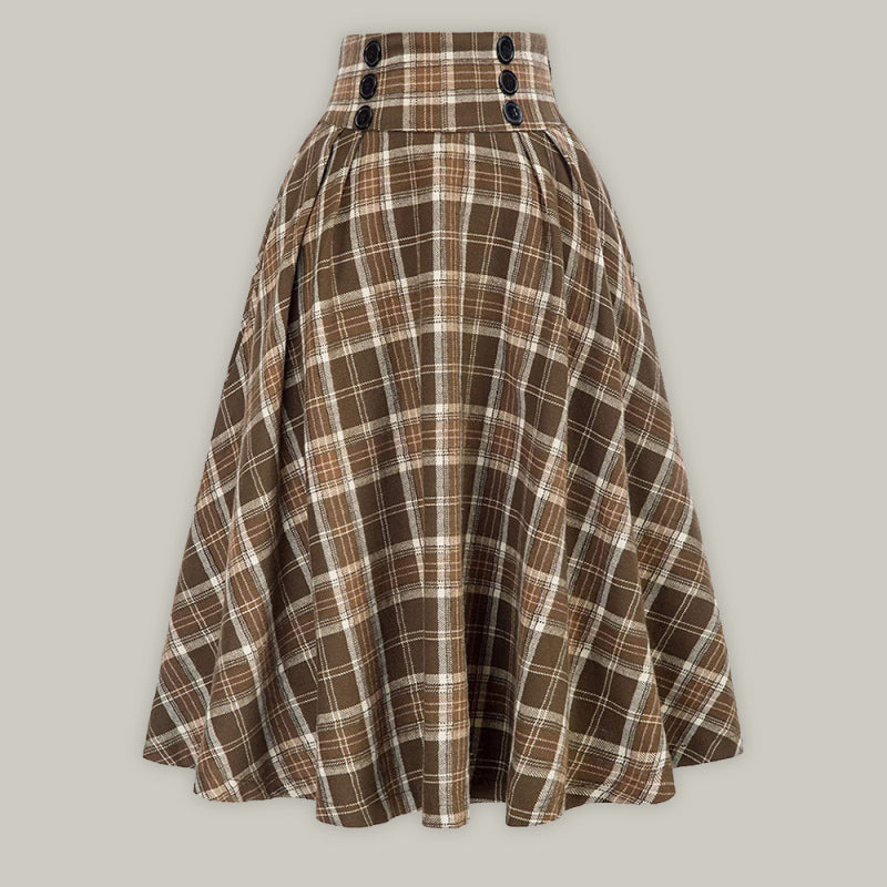 Women’s Plaid Print Buttons High Waist Midi Skirt