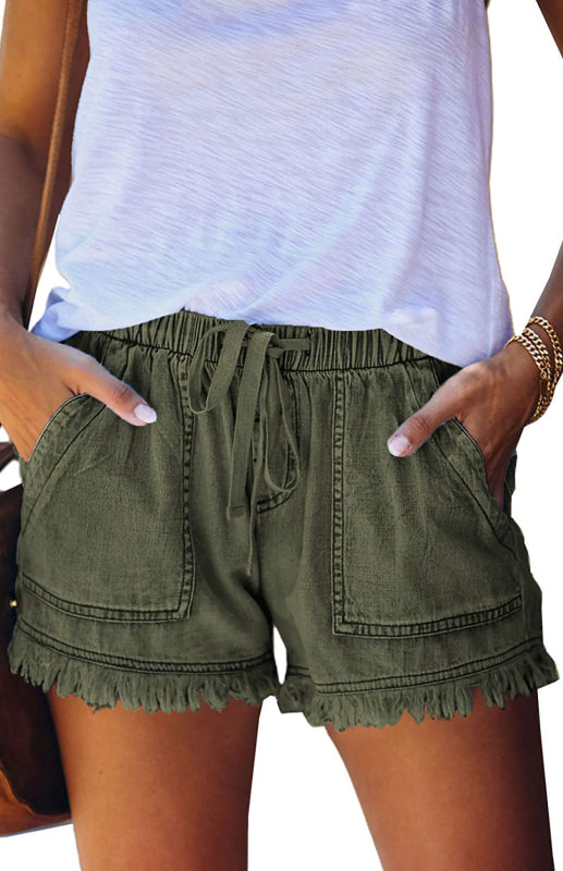 Women's Elastic Waist Drawstring Casual High Waist Slim Denim Shorts