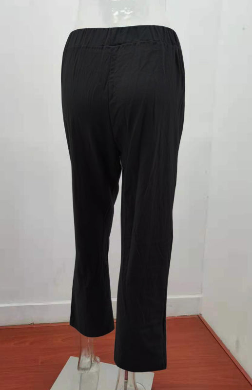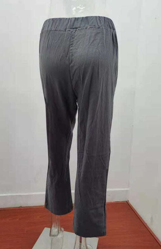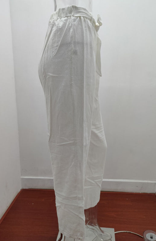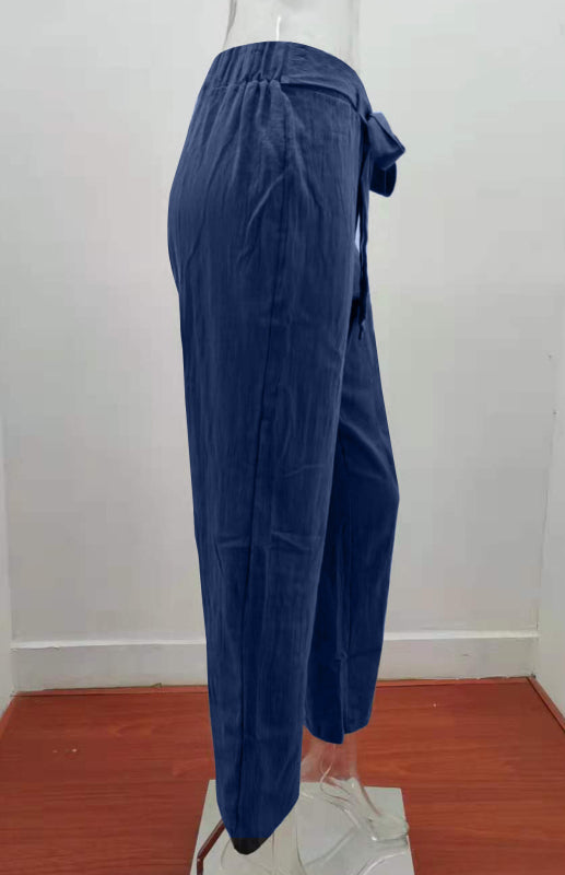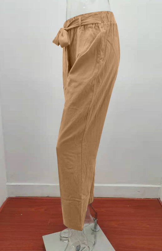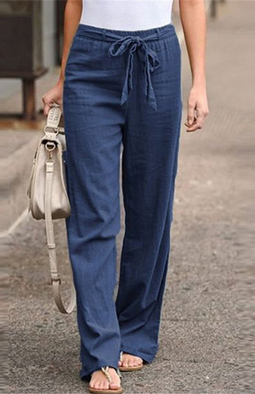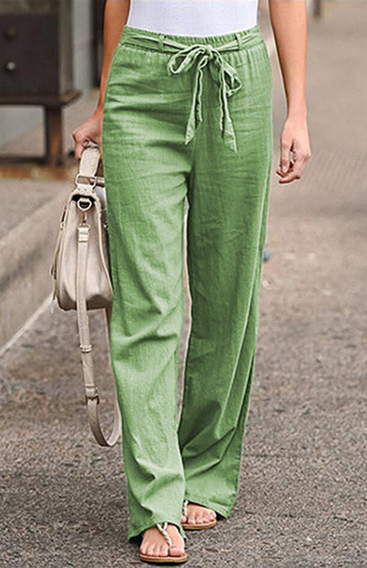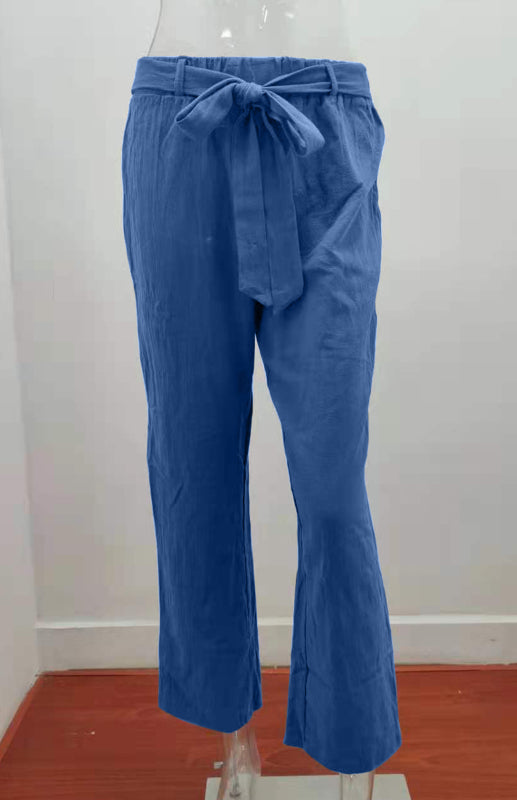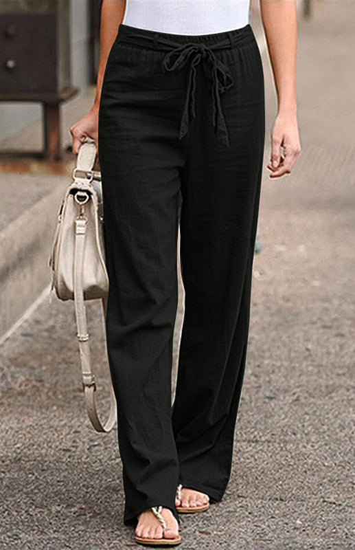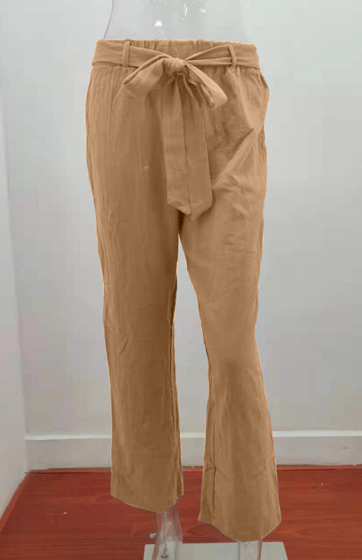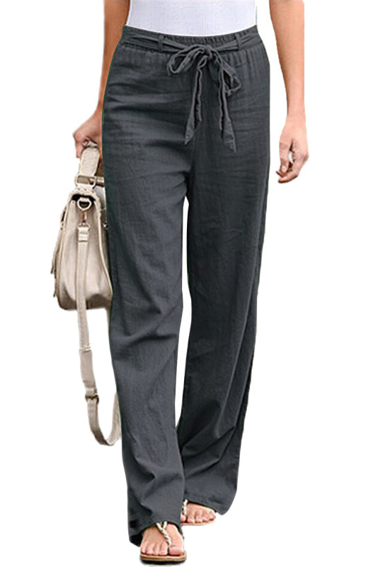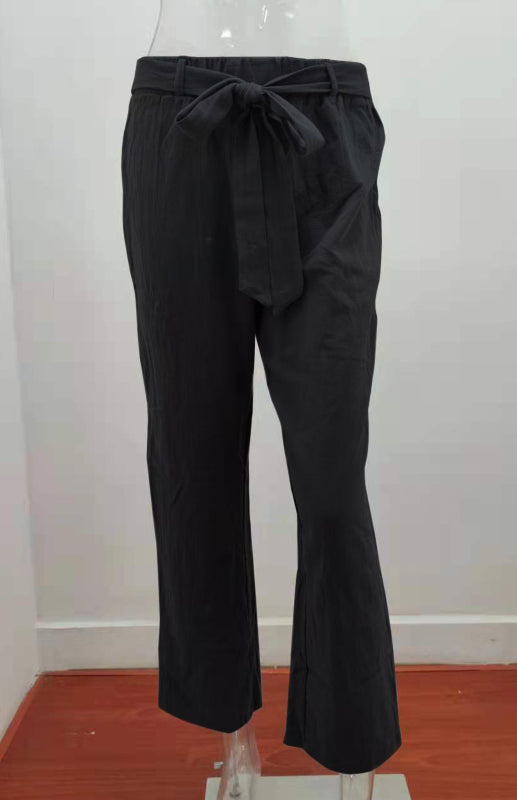 Women's European And American Elastic Waist Solid Color Belt Loose Trousers