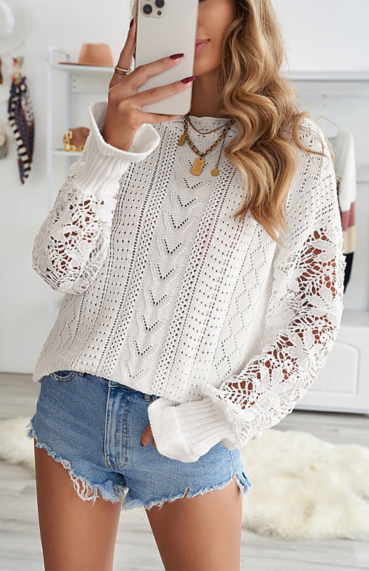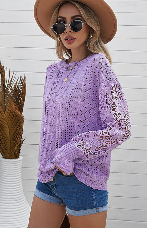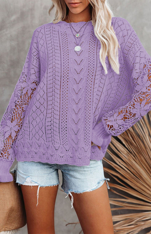Women's Long Sleeve Cutout Petal Sleeve Sweater