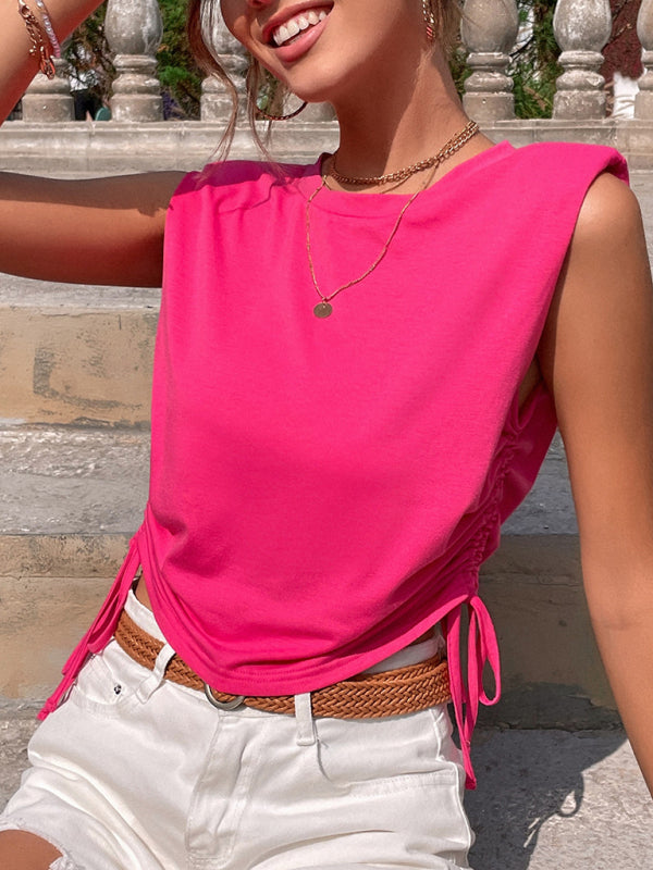 Women's Solid Color Side Rushed Drawstring Shoulder Padded Tank