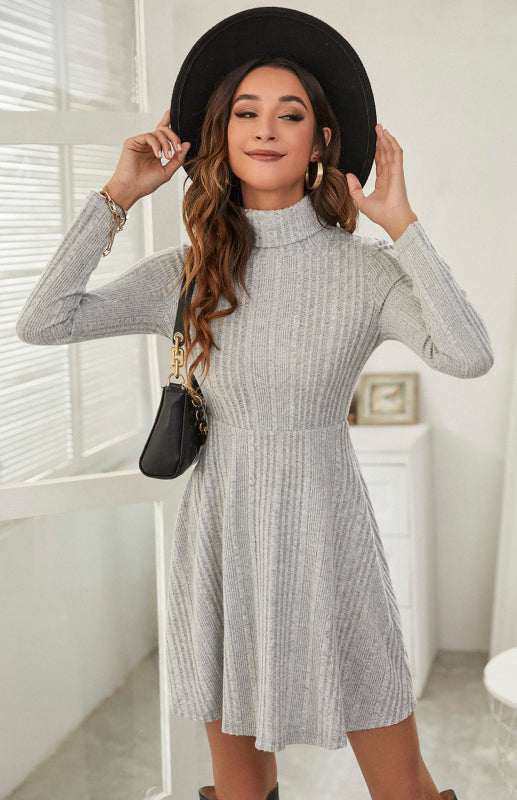 Women'S Turtleneck Pleated Ruffle Dress