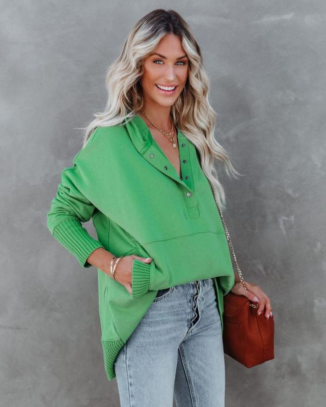 Women's V-Neck Hooded Bat Sleeve Sweatshirt