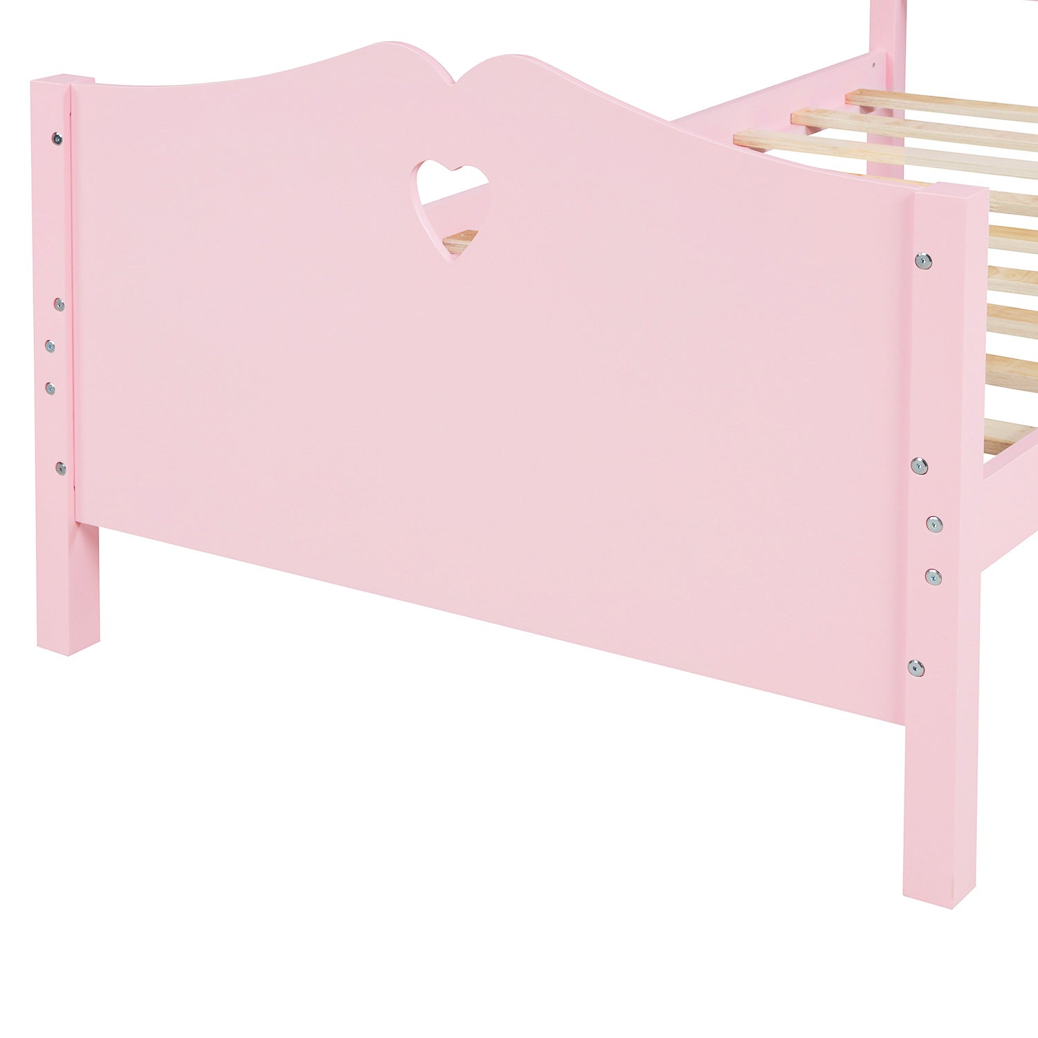 Twin Size Wood Platform Bed with Headboard,Footboard and Wood Slat Support (Pink)