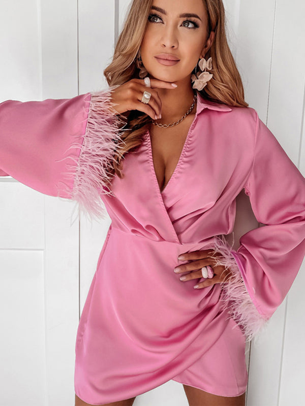 Women's fashion wool cotton cuffs Hip Wrap Dress